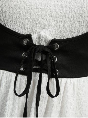 Plus Size Flower Lace Flare Sleeve Textured Lace Up Corset 2 in 1 Handkerchief Top - White - L | Us 12