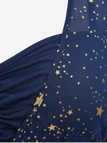 Plus Size Foil Stamping Star Print Buckle Ruched Sheer Layered T-shirt - Deep Blue - 3x | Us 22-24