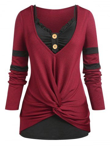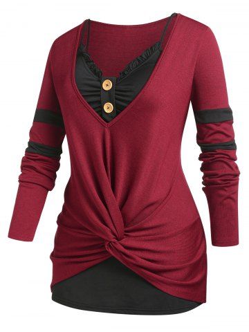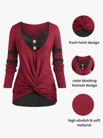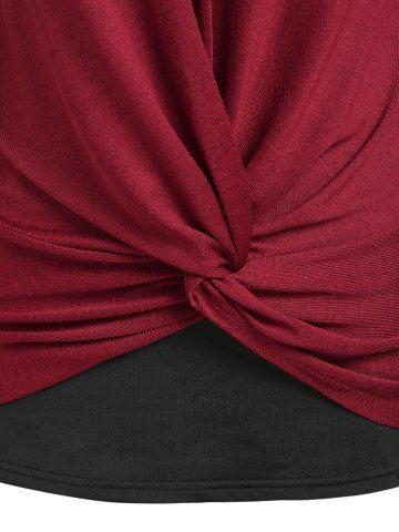 Plus Size Front Twist Tee and Ruched Tank Top Twinset - Deep Red - M | Us 10