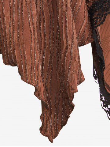 T*****i5Plus Size Medieval Renaissance Glitter Textured Ribbed Flare Sleeves Lace Trim Lace Up Asymmetric Corset Long Sleeves TopColor: DEEP COFFEE Size: L | US 12Je l’ai commandé en L et j’ai eu le XL mais ça va. Pas mal