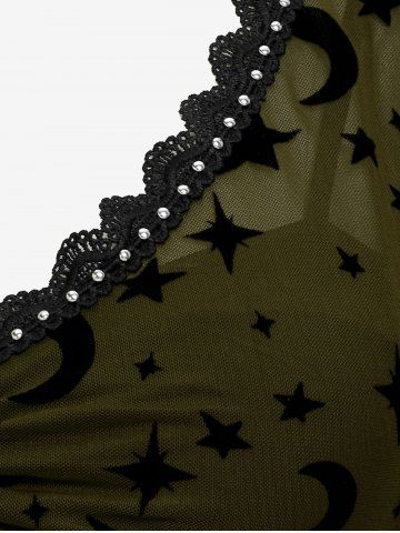 a*****75Plus Size Gothic Moon Star Print Mesh Panel Bell Sleeves Ruched Chain Tassel Long Sleeves T-shirtColor: DEEP RED Size: 4X | US 26-28This top is beautiful and fits perfectly. I haven't gotten to wear it out yet, but it's going to be a compliment-catcher, I can already tell. Love the star and moon motif, and the tiny beaded trim is an elegant touch.