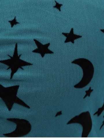 Plus Size Gothic Moon Star Print Mesh Panel Bell Sleeves Ruched Chain Tassel Long Sleeves T-shirt - Sky Blue - 1x | Us 14-16