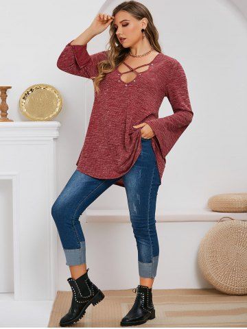 f*****r5Plus Size Basic Crisscross Curved T-shirtColor: DEEP RED Size: LI love the look, the feel, and the way it fits. I’m really looking forward to the colder temps so I can wear it more often!