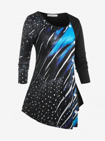 j*****e5Plus Size Irregular Printed T-shirtColor: MULTI Size: 5XTrue to size. The buttons are very cute. Love the fabric and colors. It is very comfortable.