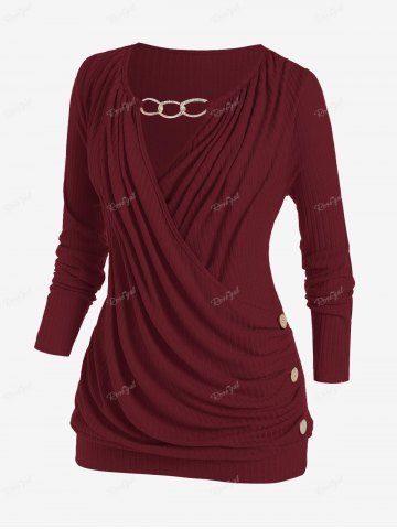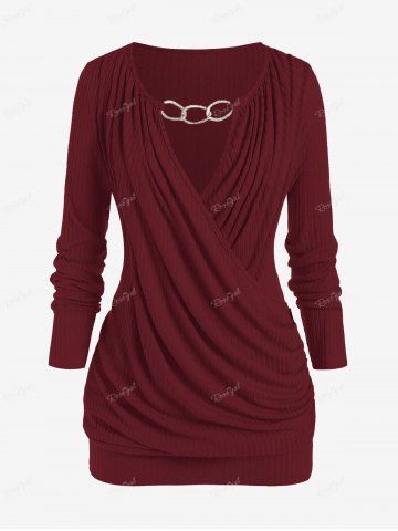 Long Sleeves > Plus Size Keyhole Chains Draped Surplice T-shirt