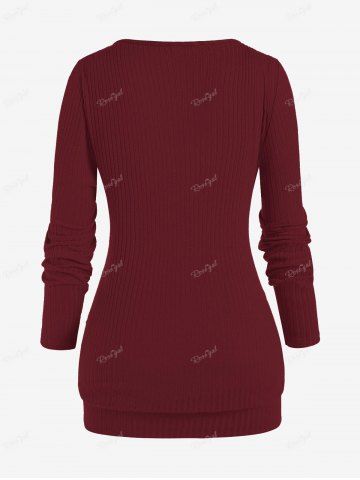 Plus Size Keyhole Chains Draped Surplice T-shirt - Deep Red - 5x | Us 30-32