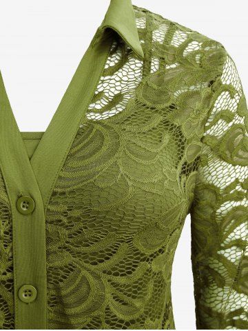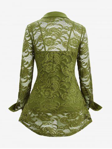 Plus Size Lace Flower Sheer Blouse and Cami Top Set - Light Green - L | Us 12