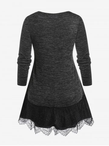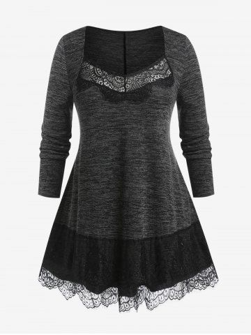 a*****35Plus Size Lace Panel Space Dye TeeColor: GRAY Size: 3XI love this shirt. It's lightweight, pretty, and calms down my wild workout outfit. I wish it was a little longer in the back. My pictures aren't the best, but gives you the idea of how long it fits on actual person. At time of picture height 5 ft 6 inches, 265 lbs. I have noticed 4 extra long strings I had to cut off. Very simple fix.