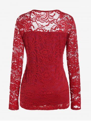 Long Sleeves > Plus Size Lace Panel Sweetheart Neck Tee