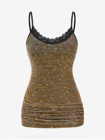Plus Size Lace Trim Chains Textured Ruched Bell Sleeves Hooded T-shirt - Yellow - 3x | Us 22-24