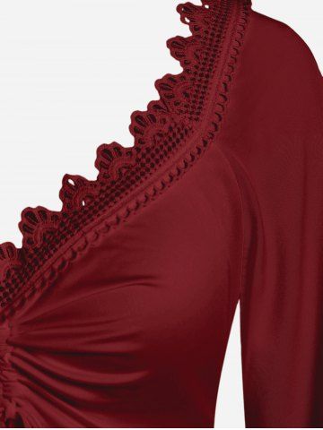 Plus Size Lace Trim Hollow Out Cinched Flare Sleeves T-shirt - Red - 5x | Us 30-32