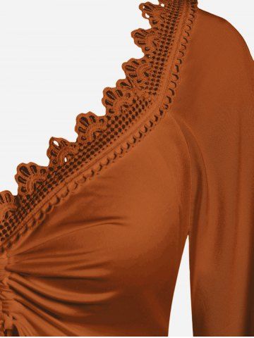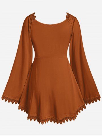 Plus Size Lace Trim Hollow Out Cinched Flare Sleeves T-shirt - Orange - 5x | Us 30-32
