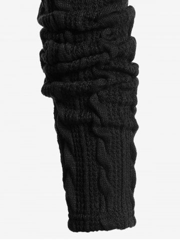 Plus Size Lace Trim Ruched Camisole and Hooded Cable Knit Hook and Eye Shrug Top Set - Black - 1x | Us 14-16