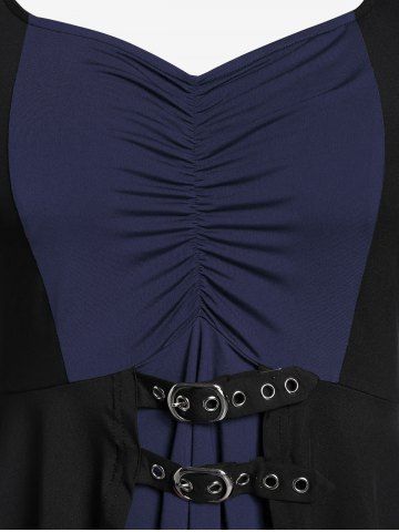 Plus Size Lace Up Contrast Ruched Grommets Buckle T Shirt - Deep Blue - 5x | Us 30-32