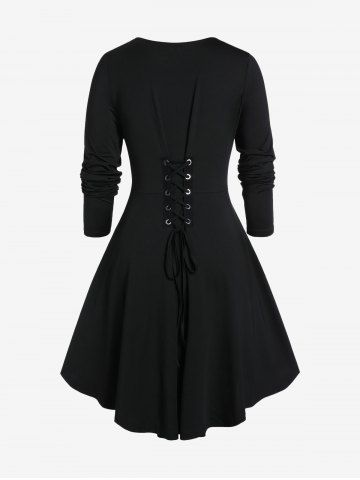 Long Sleeves > Plus Size Lace Up Contrast Ruched Grommets Buckle T Shirt