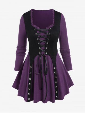 J*****e5Plus Size Lace Up Grommet Ruffles Colorblock Long Sleeves TeeColor: DEEP RED Size: L | US 12So freaking comfortable. And looking great on. Casual or work can be used for both.