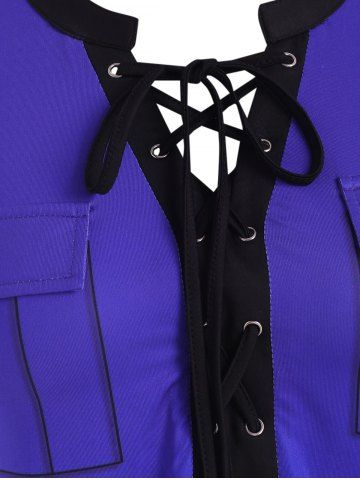 M*****e5Plus Size Lace Up Ombre Print Flap Detail Tunic TeeColor: BLUE Size: 3XI love this shirt and it sits really well. The color is beautiful. It also looks more youthful and I get lots of compliments on it.