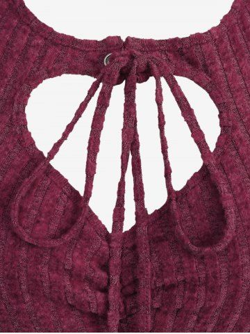 d*****m5Plus Size Lace-up Tied Cinched Floral Lace Flare Sleeve Keyhole Neck Textured T-shirtColor: DEEP RED Size: 4X | US 26-28This is so soft and comfy. Perfect when it's cold but you don't want to get over heated. I highly recommend you hand wash, as even on gentle cycle all the ties will get really tangled.