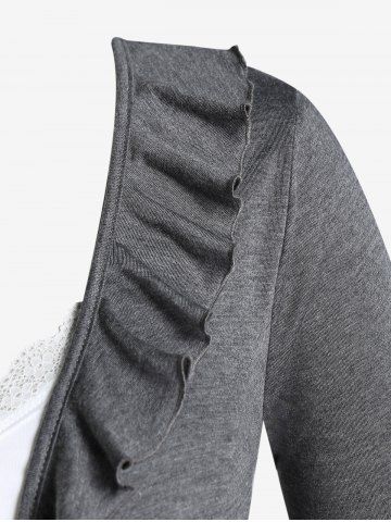 m*****y5Tie Ruffles Tee and Lace Panel Tank Top Set and Cinched Wide Leg Pants Plus Size OutfitColor: GRAYFits perfectly still waiting on bottoms