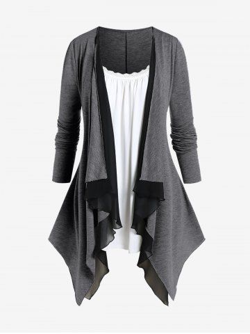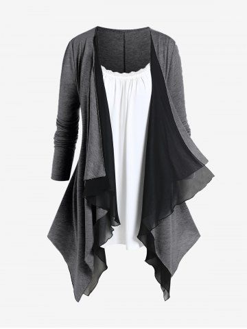 m*****e5Plus Size Mesh Lace Panel Draped Colorblock Twofer TeeColor: GRAY Size: 4X | US 26-28like the colors and the fabric