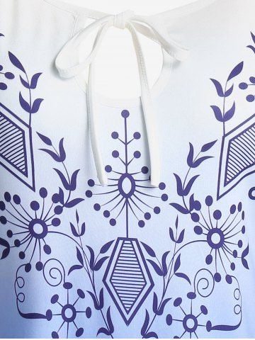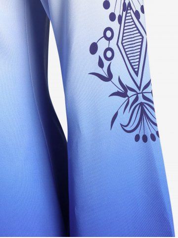 Plus Size Ombre Print Keyhole Tie Bell Sleeve Tee - Blue - 5x