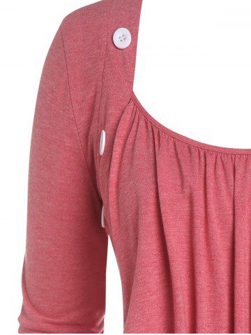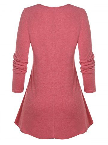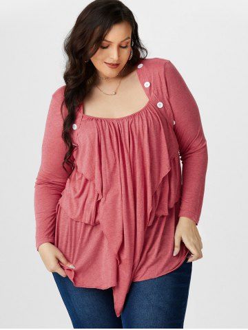 w*****l3Plus Size Layered Draped Buttoned Round Hem Tunic TeeColor: LIGHT PINK Size: 1Xthis shirt is nice arrived in nice timing too. the ruffles was different than expected but still love it