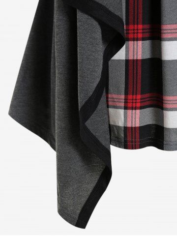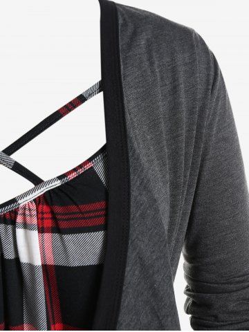 Plus Size Plaid Crisscross Asymmetric Long Sleeves Twofer Tee - Dark Gray - 2x | Us 18-20