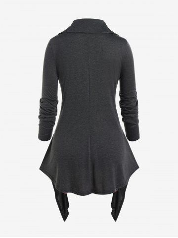 A*****a5Plus Size Plaid Crisscross Asymmetric Long Sleeves Twofer TeeColor: DARK GRAY Size: M | US 10I recently got a few tops for going over leggings. I tend to stick to darker, muted colors and I almost did that with this top (there's another style that the main color is gray with the plaid underneath) but I'm glad I got this one! It is super cute and flattering, and the brighter colors are really fun. The ruching on the side helps make it fit exactly how you want to--either longer or shorter, the sweetheart neckline gives it the illusion of a corset top underneath and the matching material at the bottom looks like it two shirts and I really like that looks. It's really soft and comfy to wear, a little thinner material, which I like. I want to get more in different colors.