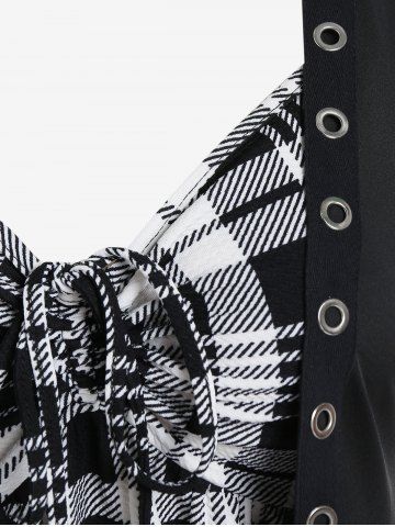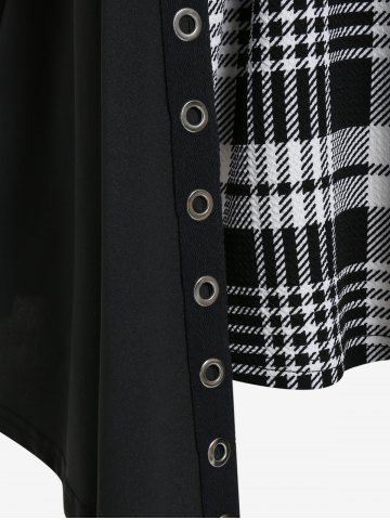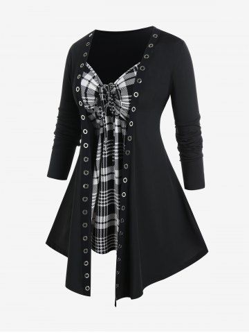 k*****55Grommets Plaid Tee and Colorblock Leggings Plus Size OutfitColor: BLACKOutfit is true to size. Shirt is light weight and very comfortable. leggings are a type of silky material but also comfortable to wear. Definitely happy with this purchase