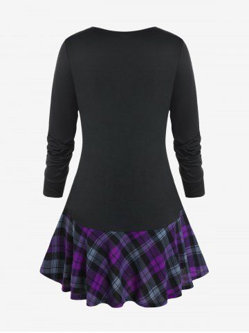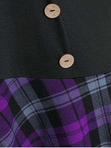 Plus Size Plaid Panel Ruched Long Sleeves T-shirt with Buttons - Black - 1x | Us 14-16