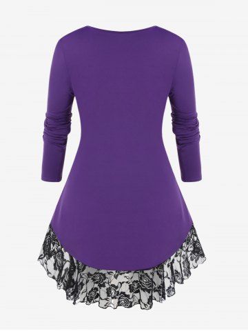 Plus Size Plunge Applique Crisscross Lace Hemline High Low Tee - Purple - 4x | Us 26-28