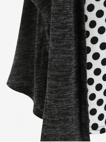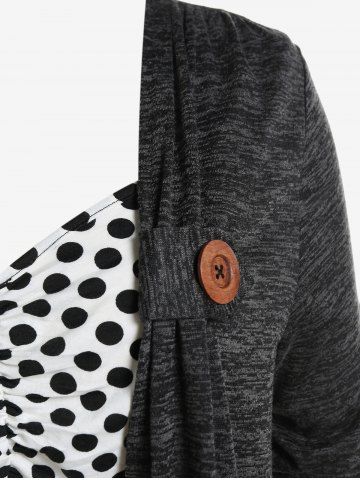 Plus Size Polka Dot Ruched Long Sleeves 2 in 1 T Shirt - Gray - 3x | Us 22-24