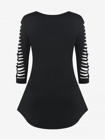t*****_5Plus Size Ripped Sleeve Lace Panel TeeColor: BLACK Size: 4X | US 26-28Bought this for my wife for Christmas along with some other gifts and she was extremely satisfied with the fit and new look. Will be buying more for her throughout the year.