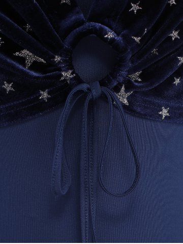 j*****y5Plus Size Ruched Lace Trim Buttons Cami Top and Silver Stamping Stars Print Crop TopColor: DEEP BLUE Size: 4X | US 26-28It's a little short to be a dress.... lol... but I really like the way it feels....