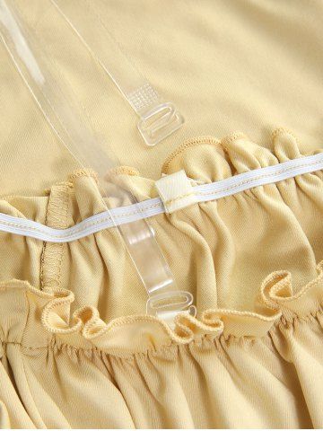 w*****f5Plus Size Ruched Bust Lace Trim Ruffles Solid Cami Top and Button Cropped Top SetColor: COFFEE Size: L | US 12This top is very comfortable. I like the fact that you can wear with the jacket or without the jacket. It pairs well with leggings or jeans.