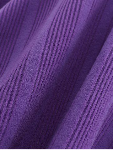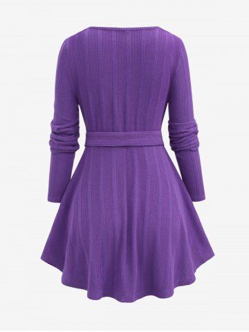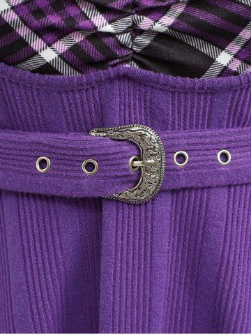 Plus Size Ruffles Ruched Plaid Ribbed Belt T-shirt - Purple - 4x | Us 26-28