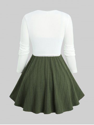 Plus Size Ruffles Ruched Textured Cami Top And Lace Trim Buckle Long Sleeve Top - Deep Green - 1x | Us 14-16