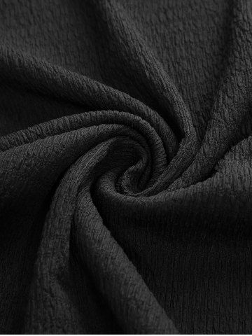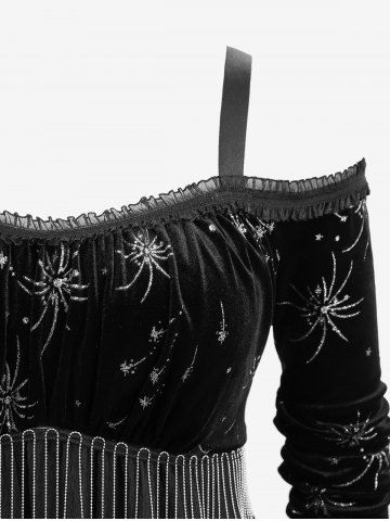 Plus Size Silver Stamping Fireworks Tassel Textured Patchwork Cold Shoulder Asymmetric Long Sleeve Top - Black - 4x | Us 26-28