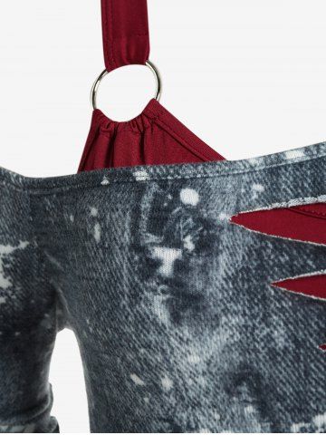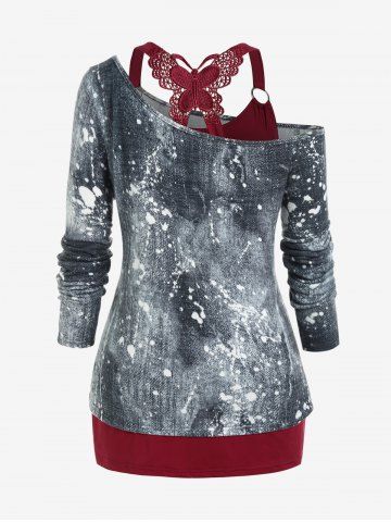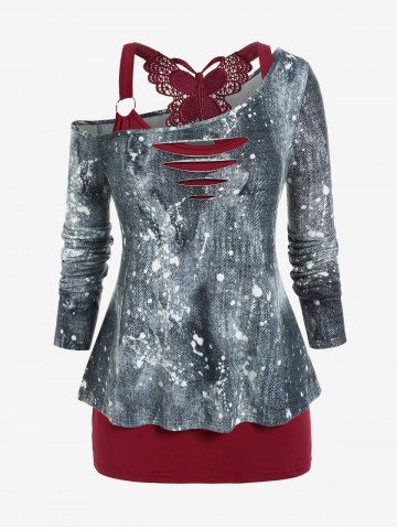 h*****95Plus Size Space Dye Skew Neck Tee and Butterfly Lace Cinched Ruched Top SetColor: GRAY Size: 1X | US 14-16Love it and you can wear it separately which is even better