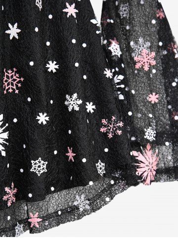 Plus Size Snowflake Print Mesh Hollow Out Panel Ruched Halter Flare Sleeves T-shirt - Black - M | Us 10