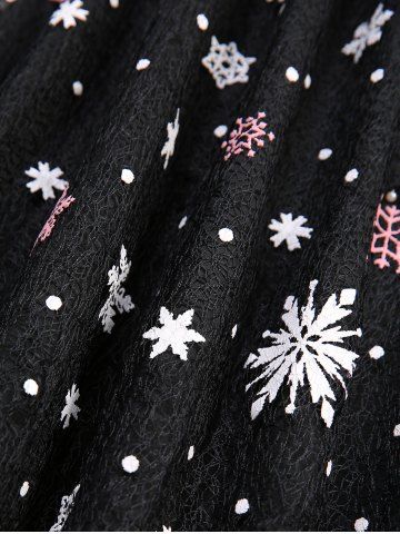Plus Size Snowflake Print Mesh Hollow Out Panel Ruched Halter Flare Sleeves T-shirt - Black - L | Us 12