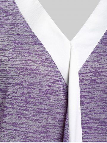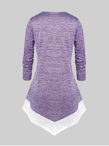 Plus Size Space Dye Contrast Brim Irregular Tee - Light Purple - 2x