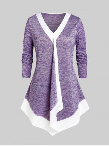 Long Sleeves > Plus Size Space Dye Contrast Brim Irregular Tee