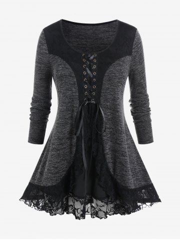 Plus Size Lace Panel Space Dye Tee