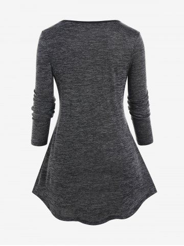 Long Sleeves > Plus Size Space Dye Lace Up Tee