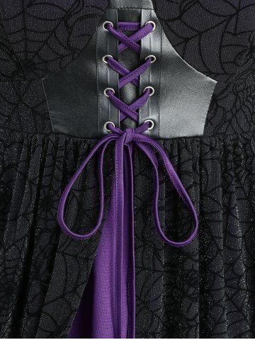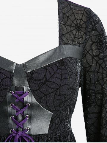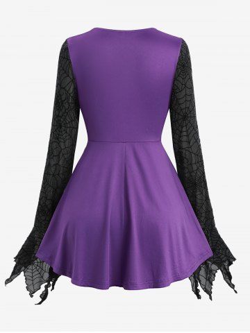 Plus Size Spider Web Flocking Silver Glitter Ruffles Lace Up Asymmetrical Top - Black - 4x | Us 26-28