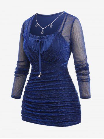 b*****y5Plus Size Star Chain Panel Ruffle Tie Ruched Glitter Mesh T-shirtColor: BLUE Size: L | US 12My daughter loves this top on me. In fact, she picked it out for me.