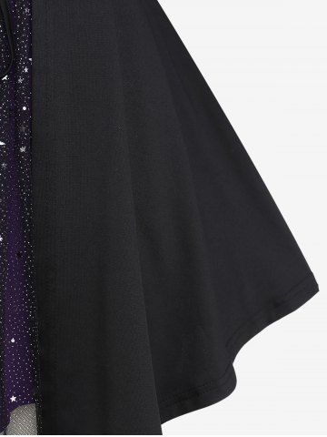 j*****e5Plus Size Stars Lace-up Cutout Chain Long Sleeves 2 in 1 TeeColor: BLACK Size: 3X | US 22-24If you love purple with a subtle star design then this is your shirt very comfortable and form flattering. Really liked the silver stars and wear for fancy or casual works either way