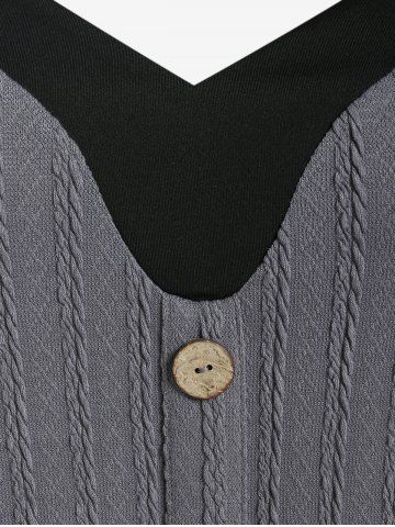 Plus Size Sweetheart Neck Contrast Color Mock Buttons T-shirt - Dark Gray - 4x | Us 26-28