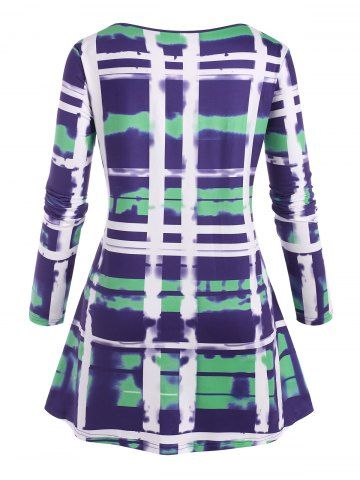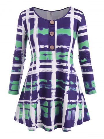 K*****n4Plus Size Tie Dye Plaid Buttoned Tunic TeeColor: DEEP BLUE Size: 1XVery nice, hangs great. Bright, comfortable. Fits pretty true to size. Floats over the hips.